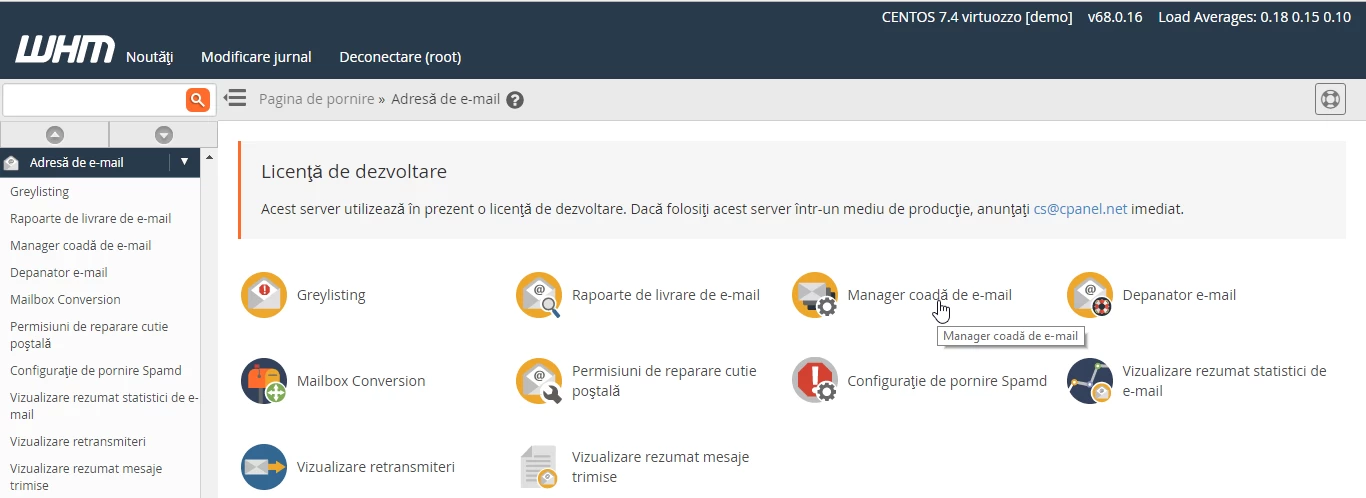 - Nachdem wir uns im WHM-Administrationspanel angemeldet haben, gehen wir zu E-Mail-Adresse und klicken dann auf E-Mail-Queue-Manager.