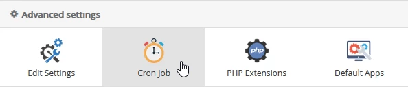 - Nachdem Sie sich im Webuzo-Administrationspanel angemeldet haben, suchen Sie nach dem Abschnitt Erweiterte Einstellungen im angezeigten Fenster und wählen Sie dort Cron-Job aus.