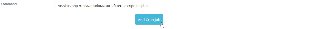 - Im Command-Feld wird der gewünschte auszuführende Befehl eingegeben. In der Regel verweist er auf ein vordefiniertes PHP-Skript auf dem Hosting, nach dem der Button "Cron-Job hinzufügen" gedrückt wird.