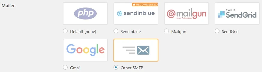 - Im Abschnitt Mailer wählen Sie die Option Other SMTP.