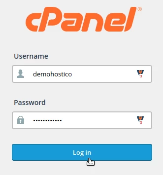 - Wir werden auf cPanel über den im Admin-E-Mail für das Hosting bereitgestellten Link zugreifen, wobei wir den Benutzernamen und das Passwort aus derselben E-Mail verwenden.
