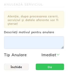 - Im angezeigten Fenster muss ein Grund für die gewünschte Kündigung des Dienstes angegeben werden. Dieser Schritt ist für uns wichtig, da er uns die Möglichkeit gibt, Feedback zu sammeln, und auf dieser Grundlage können wir die angebotenen Dienstleistungen verbessern.