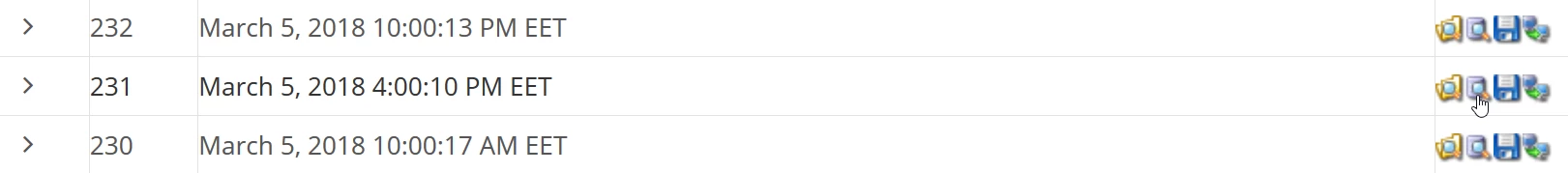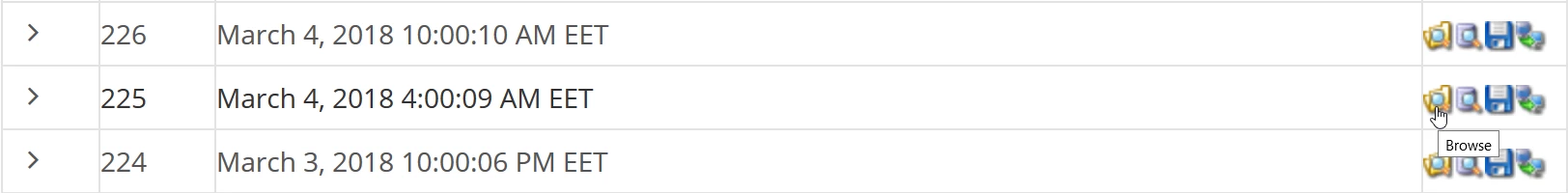 - Um die aus dem ausgewählten Zeitraum gespeicherten Datenbanken anzusehen, klicken wir auf den Pfeil ">".