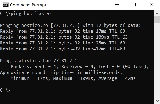 In unserem Beispiel sehen wir, dass die IP, die mit der Domain hostico.ro verbunden ist, 77.81.2.1 lautet.